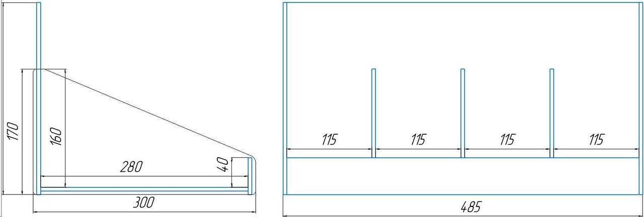 Длина 485 мм, высота 170 мм, глубина 300 мм